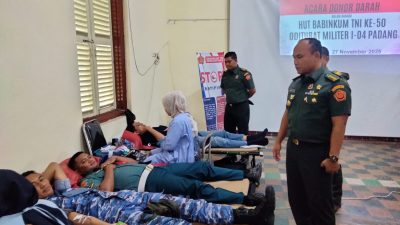 Padang, Rakyat Sumbar–Sebagai bagian dari rangkaian perayaan Hari Ulang Tahun ke-50 Badan Pembinaan Hukum Tentara Nasional Indonesia (Babinkum TNI) yang jatuh pada 3 Desember 2025 mendatang, Oditurat Militer (Otmil) I-04 Padang menggelar kegiatan donor darah yang berlangsung di Kantor Otmil I-04 Padang, di Jl Sudirman Padang. Kamis (27/11)