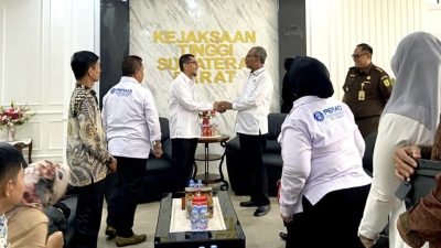 Padang – Dewan Pimpinan Cabang Perhimpunan Advokat Indonesia (DPC Peradi) Padang mengadakan kunjungan silaturahmi ke Kejaksaan Tinggi Provinsi Sumatera Barat di Jl. Jaksa Agung R. Soeprapto No.4, Flamboyan Baru, Kec. Padang Barat, Kota Padang pada hari Rabu, 5/11/2025. Kedatangan DPC Peradi Padang disambut langsung oleh Kepala Kejaksaan Tinggi Sumatra Barat Bapak Muhibuddin, S.H., M.H yang didampingi oleh Asisten Pembinaan (Asbin) M. Haris Hasbullah, S.H., M.H, Asisten Pidana Umum (Aspidum) Burhan S.H., M.H dan Asisten Pidana Khusus (Aspidsus) Fajar Mufti, S.H., M.Hum.