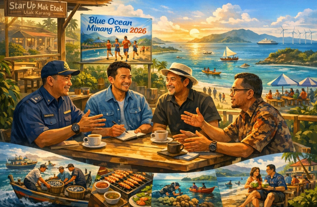 Itulah yang saya rasakan suatu malam di kawasan Ulak Karang. Di sebuah ruang kreatif yang dikenal sebagai Star Up Mak Etek, kami berbincang santai tentang laut dan masa depan ekonomi Sumatera Barat.