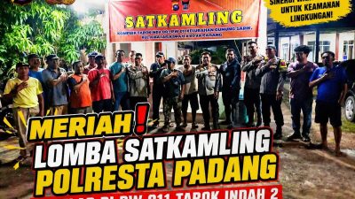 Padang, Rakyat Sumbar – Dalam upaya memperkuat sistem keamanan lingkungan berbasis masyarakat, Polresta Padang kembali menggelar Lomba Satuan Keamanan Lingkungan (Satkamling) antar kecamatan se-Kota Padang. Salah satu babak perlombaan berlangsung pada Selasa malam (28 April 2026) di Pos Satkamling Perumahan Tarok Indah 2 Permai RW 011, Kelurahan Gunung Sarik, Kecamatan Kuranji, Kota Padang.