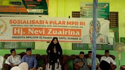 Padang Pariaman, Rakyat Sumbar – Anggota DPR RI dari Fraksi PKS Daerah Pemilihan Sumatera Barat II, Nevi Zuairina, yang juga merupakan anggota Komisi XII DPR RI membidangi sektor Energi dan Lingkungan Hidup, melaksanakan Sosialisasi 4 Pilar MPR RI bersama masyarakat Nagari Balah Aie, Kecamatan VII Koto Sungai Sarik, Kabupaten Padang Pariaman, Provinsi Sumatera Barat. Kegiatan tersebut digelar beberapa waktu yang lalu dengan tujuan menumbuhkan kesadaran dan pemahaman masyarakat tentang pentingnya menjaga persatuan dan keberagaman bangsa Indonesia.