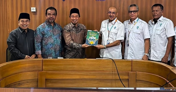 Padang – Perusahaan Umum Daerah (Perumda) Air Minum Kota Padang bersilaturahmi sekaligus menjajaki kerjasama dengan Yayasan Wakaf Ar Risalah Padang, belum lama ini.