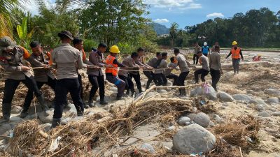 Sejak hari pertama bencana, personel dari ketiga institusi turun ke lapangan tanpa menunggu aba-aba panjang. Mereka menerjang medan berat, menembus jalur berlumpur, dan menjangkau lokasi-lokasi yang bahkan hanya bisa diakses dengan berjalan kaki. Di sinilah kolaborasi nyata terlihat begitu kuat. Petugas PLN bersama anggota TNI bahu-membahu mengangkat tiang listrik yang tumbang akibat longsor, bergelut dengan tanah yang masih labil dan penuh risiko. Sementara itu, personel Polri menarik kabel jaringan sambil menjaga area tetap aman dari kerumunan dan potensi gangguan lalu lintas. Ketika alat berat belum mampu mencapai titik kerusakan, tim gabungan memilih mengandalkan kekuatan tangan dan alat seadanya untuk mendirikan kembali tiang listrik yang roboh.