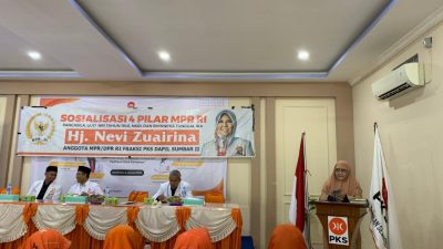 Pariaman,Rakyat Sumbar – Anggota Fraksi Partai PKS DPR RI, Hj. Nevi Zuairina, menggelar acara Sosialisasi Empat Pilar Kebangsaan di Kota Pariaman yang dihadiri oleh kader-kader Partai PKS dari berbagai usia dan latar belakang. Acara ini bertujuan untuk meningkatkan pemahaman kader tentang pentingnya empat pilar kebangsaan yang menjadi dasar kuat bagi persatuan dan kesatuan Indonesia.